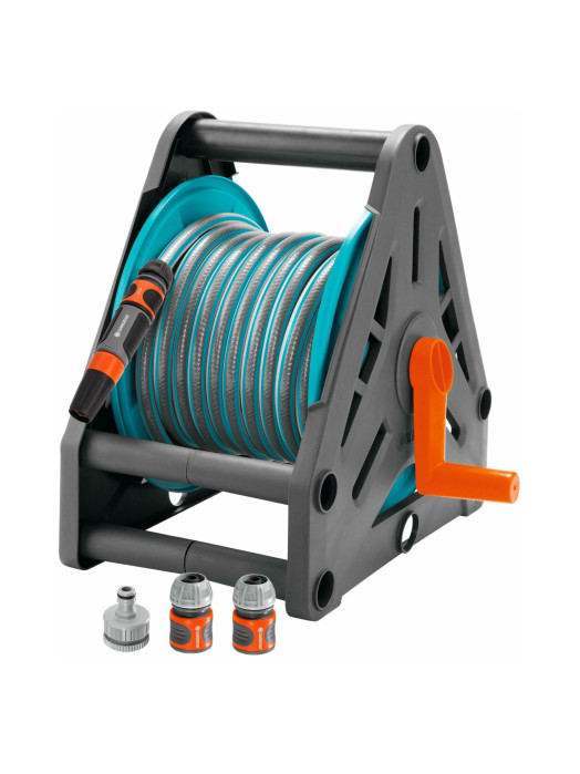 Κατασκευασμένο από υψηλής ποιότητας ανθεκτικό πλαστικό, το καρούλι Gardena συνδυάζει ελαφριά κατασκευή με μακροχρόνια αντοχή. Ο συμπαγής σχεδιασμός του εξοικονομεί χώρο και διευκολύνει την αποθήκευση, ακόμα και σε μικρά σημεία όπως αποθήκες, ντουλάπια ή μπαλκονόπορτες. Ιδανικό για σπίτια με περιορισμένο χώρο αλλά μεγάλες απαιτήσεις.