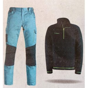 Κιτ ρούχων εργασίας, πρακτικό και ευέλικτο, που αποτελείται από το παντελόνι εργασίας μοντέλο Kavir και μια τεχνική μπλούζα microfleece. Το παντελόνι εργασίας, από ελαφρύ και ανθεκτικό σύμμεικτο βαμβακερό ύφασμα, προσφέρει στενή εφαρμογή (slim fit) και πολυάριθμες τσέπες για αντικείμενα, συμπεριλαμβανομένων ειδικών θηκών για επιγονατίδες. Η ελαφριά μπλούζα microfleece, με θερμομονωτικές ιδιότητες και μισό φερμουάρ, είναι ιδανική για εργασία με πλήρη ελευθερία κινήσεων χωρίς περιττό όγκο. Το κιτ ρούχων εργασίας προσφέρει σε μία μόνο λύση ενδύματα που εγγυώνται άνεση και αντοχή για καθημερινή επαγγελματική χρήση. Είναι ιδανικό για όσους αναζητούν λειτουργικότητα και ευκολία στις κινήσεις τους.