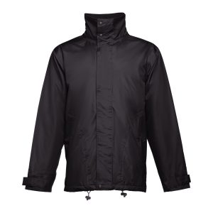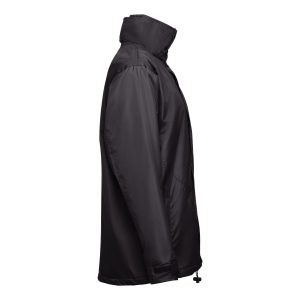 - Αναδιπλωμένη κουκούλα στο γιακά, ρυθμιζόμενη με κορδόνια με μαύρα πώματα