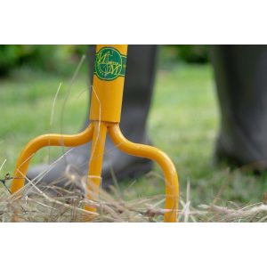 - Το Pitchfork «3» έχει τρία δόντια από σφυρήλατο χάλυβα, μήκους 20 cm. Το πλάτος της λαβής είναι 14 cm. Η λαβή είναι μήκους 97 cm, κατασκευασμένη από ελαφρύ χάλυβα και τυλιγμένη σε πλαστική θήκη. Υπάρχει μια πρόσθετη λαβή σε σχήμα Τ στο επάνω μέρος για ευκολότερο κράτημα