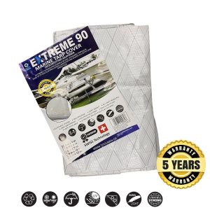 Προστατευτικό κάλυμμα για σκάφη Extreme 90 Marine Tarp Cover 3x4m λευκό. Κατασκευάζεται από πολυαιθυλένιο μεγάλης αντοχής. Είναι ανθεκτικό στην υπεριώδη ακτινοβολία, αδιάβροχο και στεγανό ιδανικό για χρήση στη θάλασσα. Μπορεί να ξαναχρησιμοποιηθεί, πλένεται εύκολα. 100% ανακυκλώσιμο. Ελβετικής πατενταρισμένης τεχνολογίας. Είναι κατάλληλο για να σκεπάζετε και να προστατεύετε το σκάφος σας από τη βροχή, τον ήλιο και τη σκόνη. Ιδανικό για την αποθήκευση του σκάφους σας κατά τους χειμερινούς μήνες αλλά και όταν βρίσκεται εν πλω.