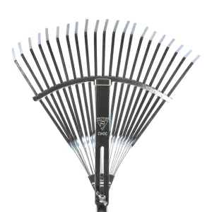 Ρυθμιζόμενη τσουγκράνα γκαζόν, που ποικίλλει από 385 mm έως 480 mm σε πλάτος. Απαραίτητο βοήθημα κηπουρικής, προσαρμόστε το σύμφωνα με τις προτιμήσεις σας. Στιβαρή, δεν θα λυγίσει. Οι επίπεδες τρίχες είναι κατασκευασμένες από χάλυβα υψηλής ποιότητας με θερμική επεξεργασία που τις καθιστά ανθεκτικές στην κάμψη και αυτό θα σας βοηθήσει να καθαρίσετε το κομμένο γρασίδι, τα φύλλα και τα απορρίμματα χωρίς να καταστρέψετε το γκαζόν. Η λαβή από αλουμίνιο είναι ελαφριά και ανθεκτική, καλυμμένη από αντιολισθητικό βινύλιο με αφρό στο επάνω άκρο της.